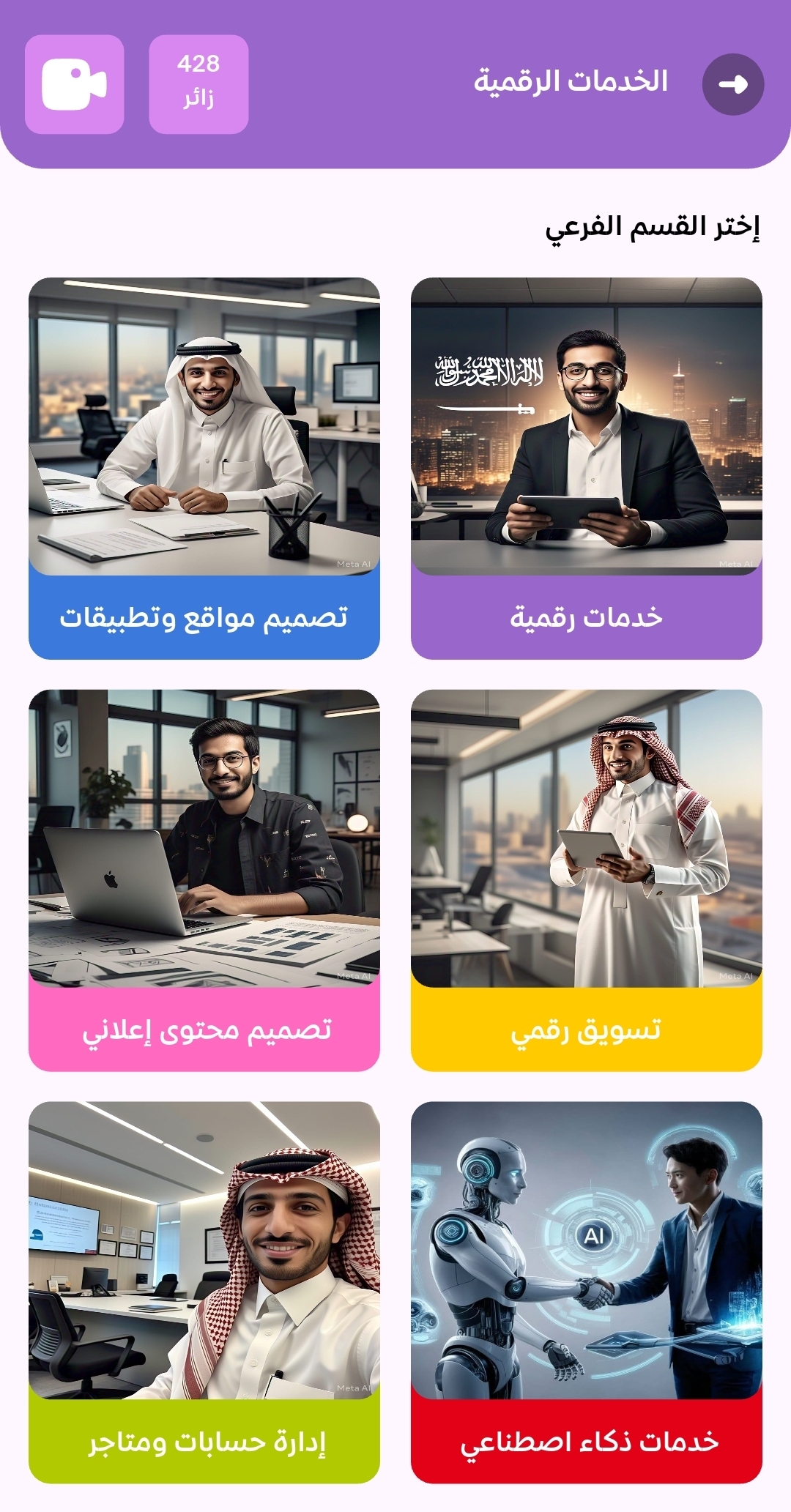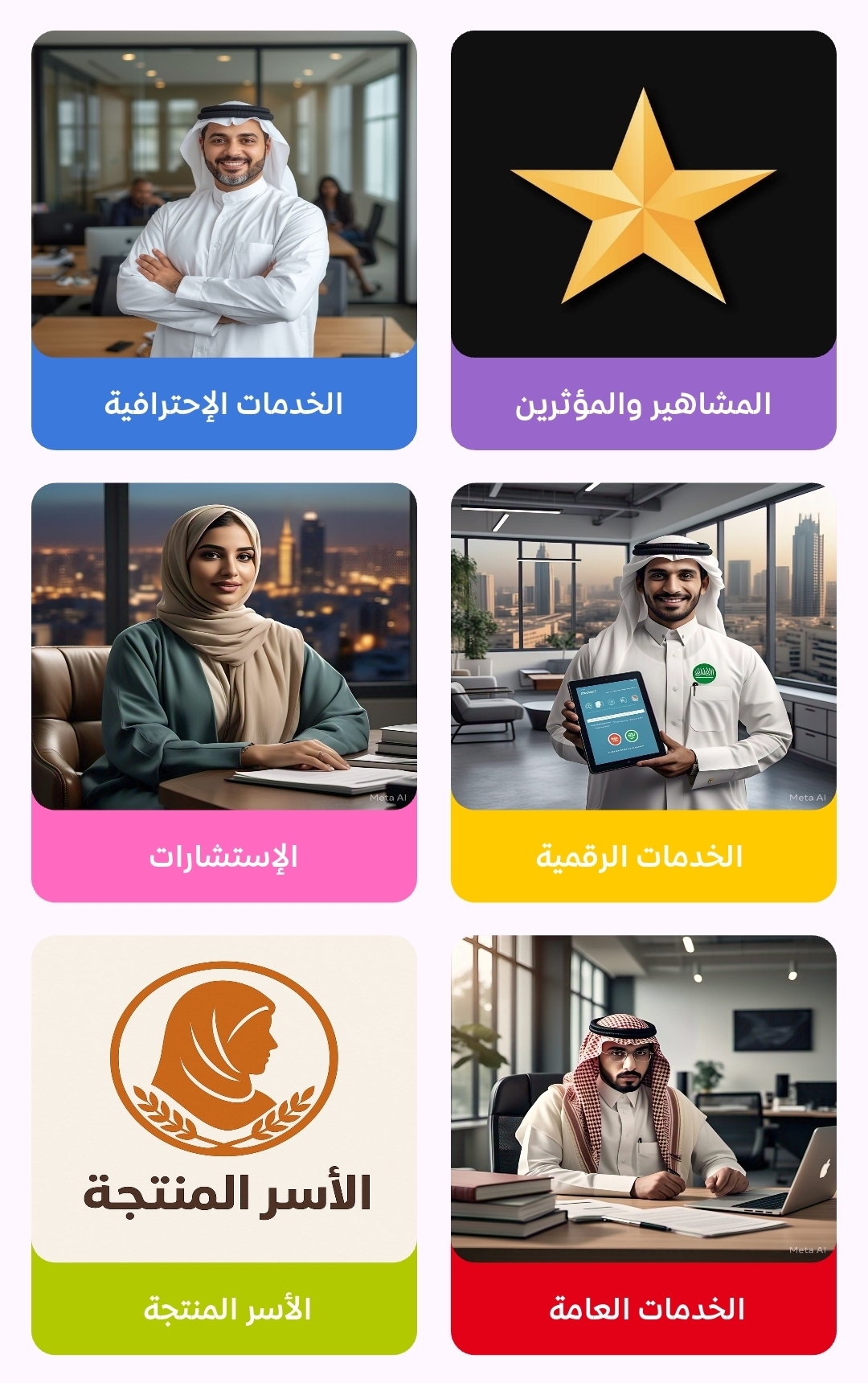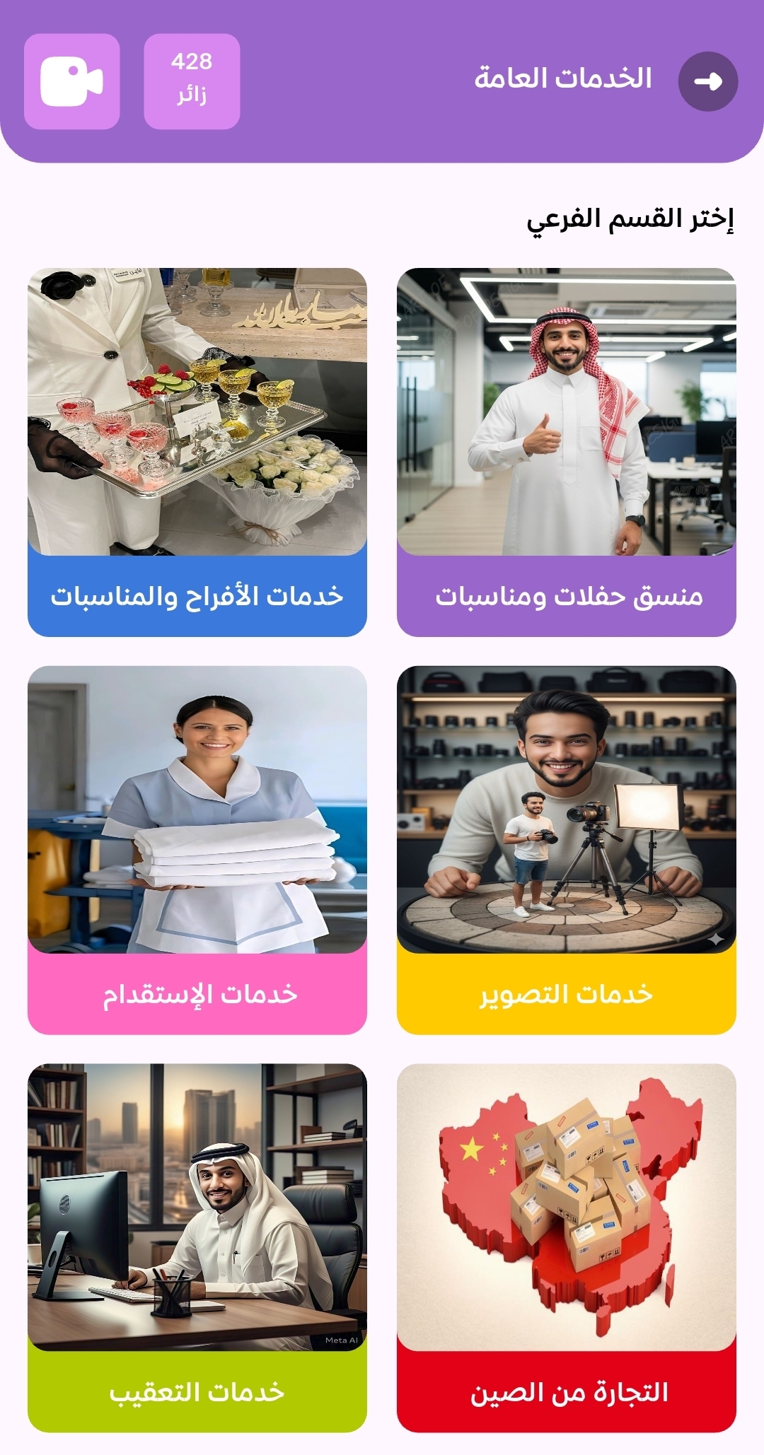 تطبيقنا هو منصة متكاملة تجمع بين العملاء ومقدمي الخدمات في مكان واحد. يتيح لك استكشاف خدمات متنوعة تشمل الاستشارات، المتاجر، ومنتجات الأسر المنتجة، مع إمكانية تصفح البروفايلات، تقييم الخدمات، وإتمام الطلبات بسهولة وسرعة